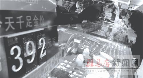 在濟(jì)南一商場(chǎng)金飾品專(zhuān)柜,工作人員在整理黃金飾品。近日,全國(guó)部分城市金價(jià)上漲,濟(jì)南一些金店的千足金價(jià)格達(dá)到每克392元,接近每克400元大關(guān)。新華社發(fā)
