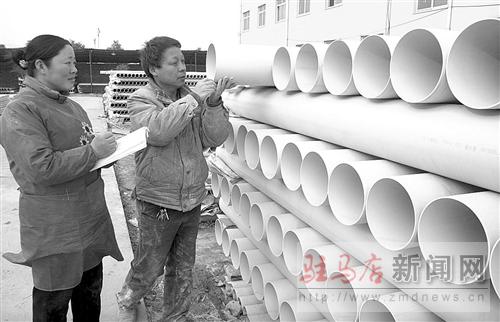 摘要: 河南康鈺管道有限公司位于確山縣產業集聚區,是一家專業從事研發、生產、銷售塑膠管道的綜合性企業,總投資100萬元,年銷售收入200多萬元。圖為公司管理人員正在統計產品數量。記者 王 朝 攝