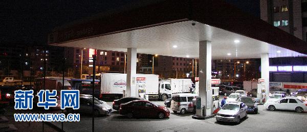 4月6日晚,武漢漢口的一個加油站擠滿前來加油的車輛。新華社發(fā)