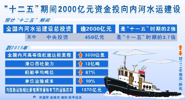 圖表:“十二五”期間2000億元資金投向內(nèi)河水運建設 新華社發(fā)