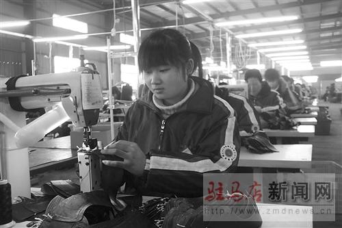 河南省誠盟鞋業有限公司位于確山縣產業集聚區,占地面積40畝,總投資3200多萬元。該公司自2010年成立以來,以生產馬靴、童鞋、棉鞋等國外知名品牌女鞋為主,年產值6000多萬元、利稅600多萬元,產品遠銷法國、俄羅斯等國家。圖為該公司生產車間一角。記者 王 朝 攝