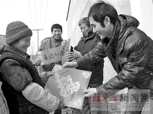 近日,農行雪松路支行員工為幫扶村農民送上新春對聯。一直以來,農行駐馬店分行把服務三農放在重要位置,組織員工深入鄉村為群眾進行金融服務,幫助農民理財,受到群眾的歡迎。 通訊員 鄧國勇 攝