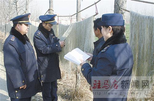 近年來,驛城區(qū)諸市鄉(xiāng)熊莊村及周邊的村民在當?shù)刂赂荒苁株愝x的帶領(lǐng)下,在工商部門的指導下,成立了“富民薯業(yè)合作社”。他們以粉條、淀粉等紅薯深加工項目為突破口,有效提高了農(nóng)產(chǎn)品的附加值,年收入300多萬元。圖為驛城工商分局劉閣工商所工作人員在向薯民了解生產(chǎn)經(jīng)營情況。 記者 鄭付生 通訊員 趙永革 余成林 攝影報道