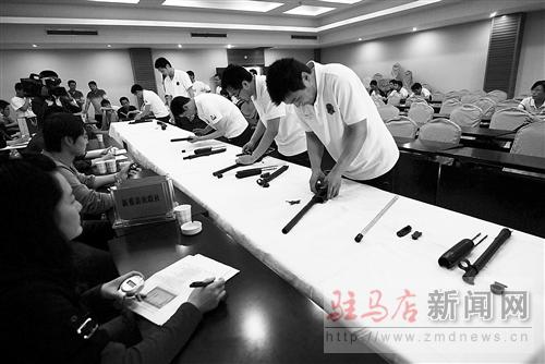 各縣區參賽隊員在進行防暴槍支分解結合測試比賽。 記者 吳 波 攝
