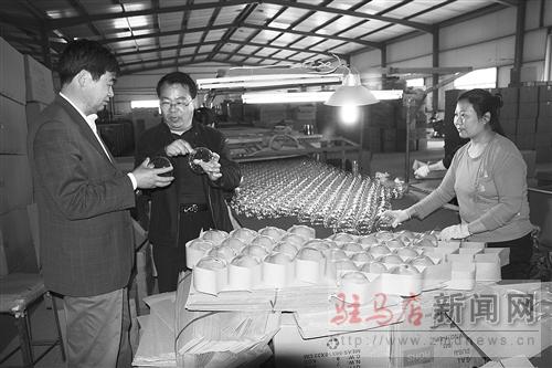 驛城區胡廟鄉招商引資企業駐馬店市遠洋照明責任有限公司總投資近億元,生產的日光照明節能燈很受市場歡迎,遠銷8個省、市和地區,產品供不應求。圖為該鄉工作人員在該企業了解生產銷售情況。記者 鄭付生 通訊員 米 山 攝影報道