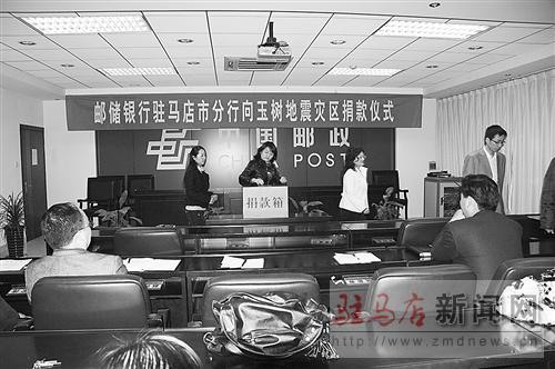 一方有難,八方支援。郵儲銀行駐馬店市分行積極組織員工為玉樹地震災區(qū)人民捐款獻愛心。