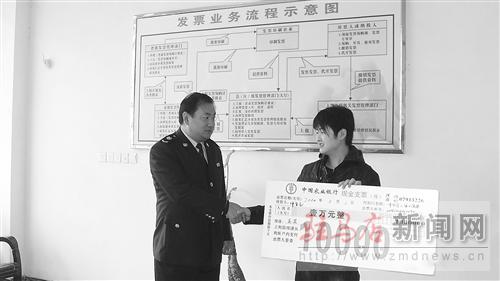 在地稅工作人員驗明發票真偽、身份證件后,師先生按照有關法規繳納了2000元的個人所得稅。市地稅局發票管理局有關負責人親手把10000元獎金遞到師先生手中,并感謝師先生對地稅工作的支持。