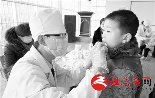 根據省衛生廳、省教育廳《2013年河南省兒童口腔疾病綜合干預項目實施方案》和《2013年河南省學齡前兒童乳牙齲綜合干預項目實施方案》的通知精神,由市口腔醫院免費為孩子做牙齒檢查及局部涂氟治療。這是醫護人員在市幼兒園為孩子們檢查乳牙的情景。