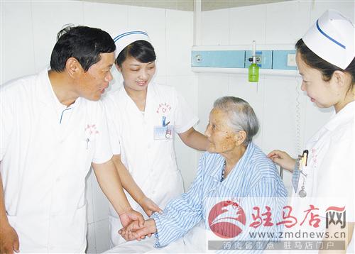 圖為張希明看望患者106歲老人曹張氏時的情景。記者 丁宏偉 通訊員 龔 偉 攝影報道