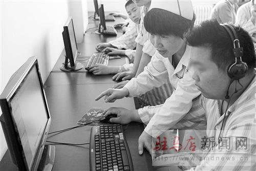 護士劉慧麗在輔導患者上網學習新知識。