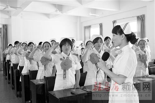 為慶祝5·12國際護士節,日前,確山縣人民醫院召開大會,表彰了在優質護理服務活動中表現突出的優秀集體和先進個人,并進行集體宣誓,要讓南丁格爾精神代代相傳。通訊員 曹天順 攝