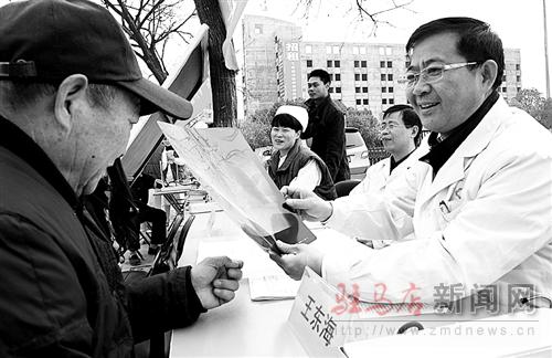 在駐馬店世紀廣場門前,醫生正在為市民義診。