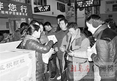 摘要: 2月4日,廣州白云山和記黃埔中藥有限公司在駐馬店火車站開展“溫暖回家路,愛心伴您行——白云山板藍根顆粒呵護您健康回家”大型公益活動,向堅守在春運一線的駐馬店火車站工作人