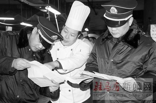為有效預(yù)防和減少食物中毒事件的發(fā)生,近期,市食品安全監(jiān)督管理支隊(duì)在全市組織開展了餐飲服務(wù)食品安全專項(xiàng)監(jiān)督檢查。圖為執(zhí)法人員正在酒店檢查調(diào)味品的索證索票情況。記者 曹媛媛 通訊員 張金貴 攝影報(bào)道