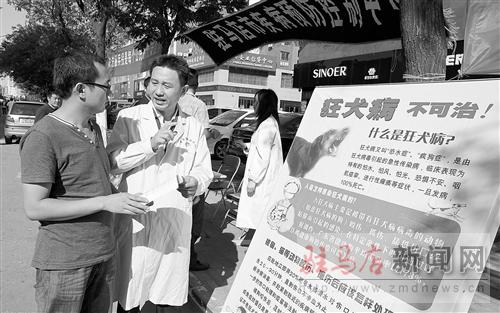 日前,市疾病控制中心等市直各醫(yī)療衛(wèi)生單位工作人員走上街頭,宣傳預防狂犬病知識,加強公眾對狂犬病防治的認識。記者 曹媛媛 通訊員 時 凱 攝影報道
