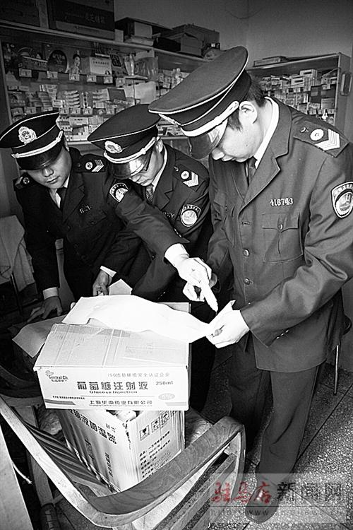 執(zhí)法人員正在對(duì)黑診所內(nèi)的藥品進(jìn)行封存。