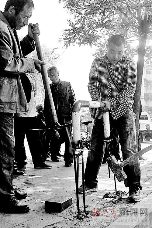 市市政工程管理處的監察人員說,1個星期前,該路口西北角的人行道上被附近的商家安裝了欄桿。監察部門曾下發整改通知書,但至今商家無動靜。記者在現場看到,監察人員將60余個護欄一一拆除。