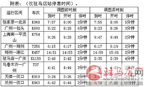 9趟列車在駐馬店火車站停靠時間表