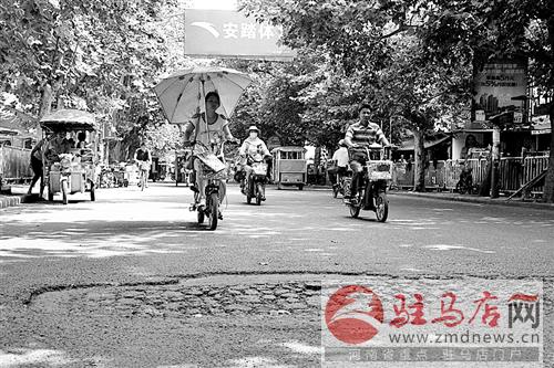 7月8日,記者從市風(fēng)光路北段往南走,看到路面上坑坑洼洼,一些人騎電動車經(jīng)過時,顛得老高。