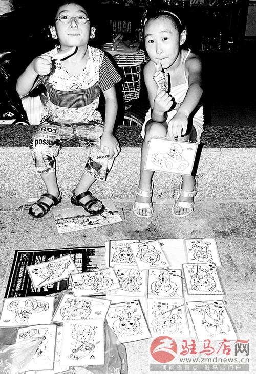 在附近的一個小攤點上,8歲的李彤彤和7歲的李昂在家長的陪同下來到小游園賣卡通畫。瞧,倆人剛賣了一幅卡通畫,就迫不及待地買來冰棍慰勞自己。