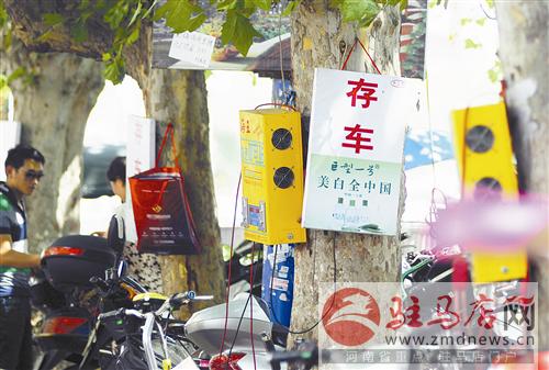 日前,記者在市區風光路、健康路等路段看到,路兩邊的大樹遭遇不同程度的破壞。有很多商戶為了達到廣告效果或者為了自己的方便,在路邊的大樹上釘上釘子和綁上鐵絲,掛的有茶杯、拖把、衣服、廣告牌等,幾乎每棵樹上都遭到了破壞,如此做法不僅對樹木造成損害,還嚴重影響了城市形象。記者 吳 波 攝
