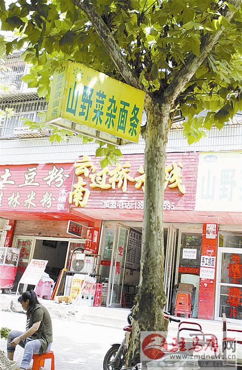 健康路東段有家飯店的廣告牌子掛在了樹上。
