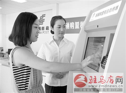 近日,為方便納稅人辦理車輛購置稅,市國稅局車輛購置稅征收管理分局與市區郵政局簽訂了《委托代征稅款協議》,將部分車購稅征收業務委托郵政部門代辦。市民可攜帶納稅申報表、車輛出廠合格證、機動車銷售統一發票(報稅聯)、身份證(個人車輛)或機構組織代碼證復印件(單位車輛)到市區郵政中心所辦理相關業務。圖為郵政人員為用戶介紹車購稅自助終端操作流程。記者 王 晨 通訊員 邵 新 攝影報道