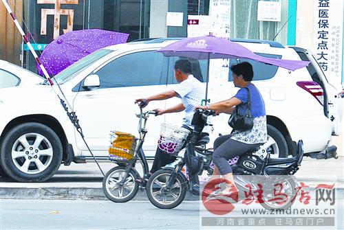 昨日上午,記者在市區街頭觀察了一會兒,發現大多數電動車都裝有遮陽傘。駐馬店天龍市場一賣遮陽傘的店老板告訴記者:“今年遮陽傘賣得非常好。”據了解,為電動車安裝一把遮陽傘需要50~150元。