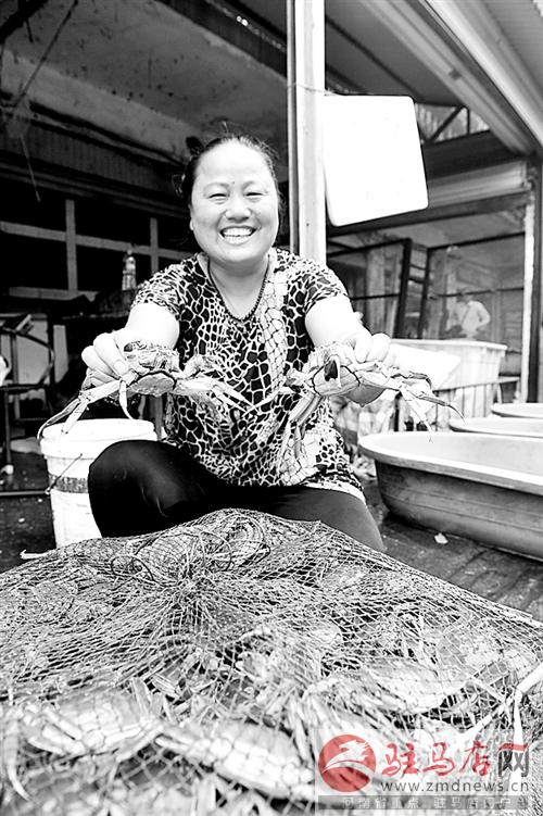 昨日上午,在駐馬店華康市場,一商戶向記者展示剛上市的螃蟹。