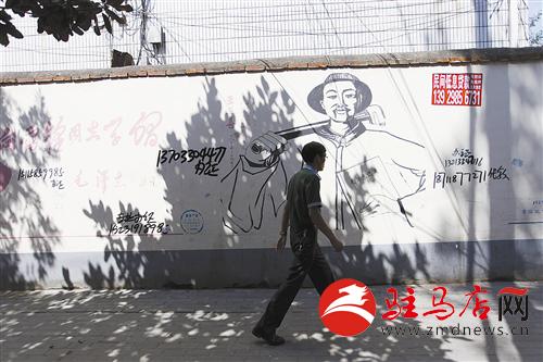 被人們稱為“牛皮癬”的小廣告一直是影響市容的頑疾,近日,記者在市區電西街馬路兩邊看到,本是宣傳文明的漫畫墻卻被各種小廣告張貼、噴寫,影響了城市形象。記者吳 波 攝