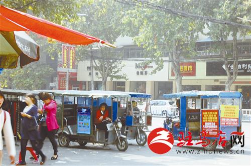 10月15日上午,記者在市區樂山大道大商新瑪特駐馬店總店附近看到,許多小商販和三輪車把整個路口堵得無法通行。據附近居民反映,這個路口經常被堵,希望有關部門加大管理力度,讓市民出行不再難。 記者 馬國省 攝