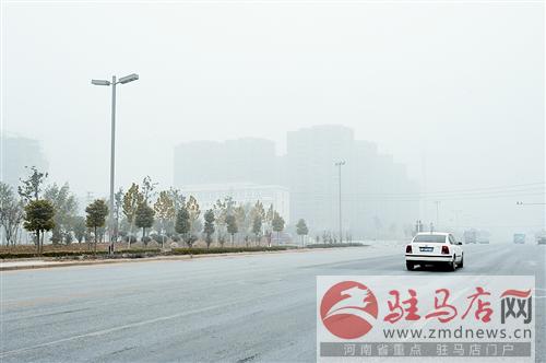 昨日,雖然天很冷并有北風吹,但市區霧霾遲遲不散。