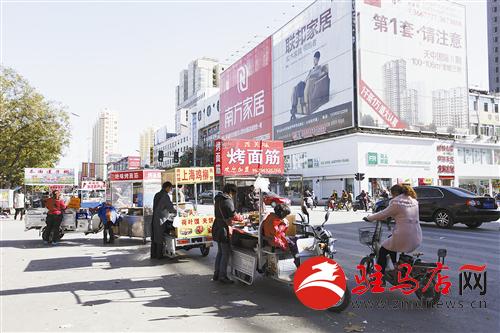 近段時間,在市區駿馬河兩岸有很多商販擺攤,導致駿馬路有些路段經常水泄不通。圖為市區駿馬路南段商販在占道經營。 記者 彭 程 攝