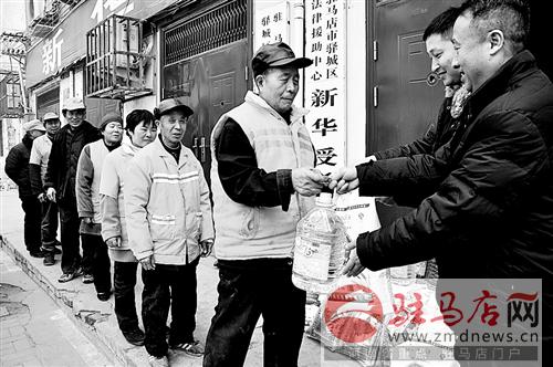 本報訊 昨日下午3時許,驛城區新華街道環衛站“關愛環衛工,新春送溫暖”活動正式啟動。一袋袋米、面,一壺壺食用油送給了奮戰在一線的環衛工人。