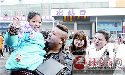本報(bào)訊 “爸爸,兒子回來啦!”“乖兒子,快讓爸爸抱抱!”“3年沒回家了,回家的感覺真好!”昨天是臘月廿九,在駐馬店火車站出站口,接親人的市民翹首企盼。在外的游子們,終于趕在大年三十前回到家鄉(xiāng),返鄉(xiāng)的他們和家人擁抱在一起,幸福之情溢于言表。