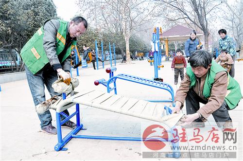 本報訊 3月1日一大早,市園林局廣場辦主任海均就來到市交通路兒童公園、市解放大道世紀廣場等地方,他要檢查一下這里的健身器材損壞情況,并記下需要更換的器材名稱和數量。