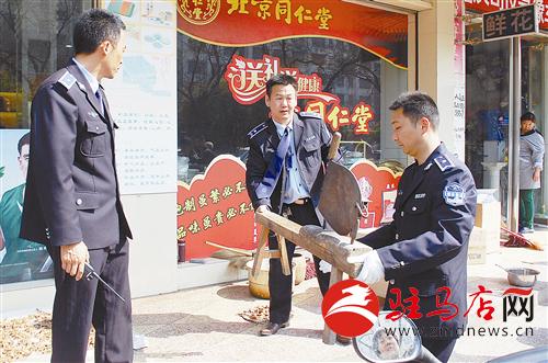 驛城區(qū)綜合執(zhí)法局清理沿街占道商品