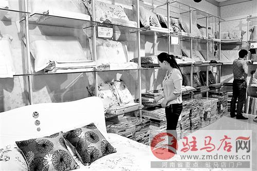 在市文明大道北段丹尼斯步行街一家名為“金圓家紡”的店內,筆者看到,各式各樣的床上用品擺滿了貨架。