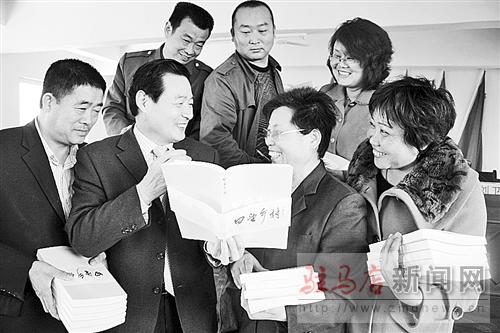 該書作者、市委副秘書長王太廣,市宣傳部副部長,駐馬店日報社黨委書記、社長劉根社以及驛城區、水屯鎮政府有關領導出席了捐贈儀式。此次,出生在驛城區水屯鎮的王太廣共向家鄉19個行政村的“農家書屋”和鎮機關圖書社捐贈100本《回望鄉村》,為家鄉的父老鄉親送上一份文化大餐。