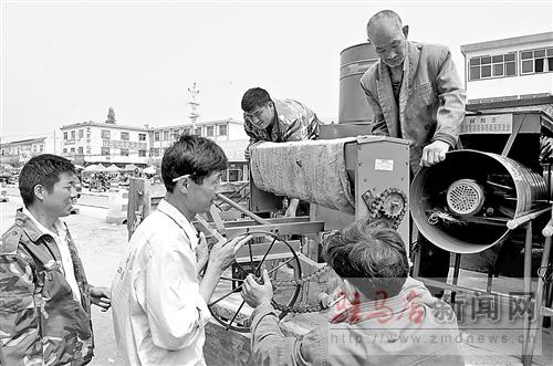 今年我市小麥長勢喜人,成熟在即,我市各縣區群眾正積極備戰三夏。圖為確山縣瓦崗鎮群眾購買農機具備戰三夏。 記者 劉 超 攝