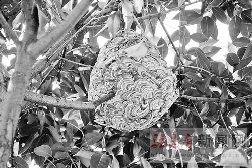 專家提醒,胡蜂蜂毒比較厲害,大家千萬不要被它美麗的外表所迷惑,一旦發(fā)現(xiàn)要趁早端掉蜂巢。