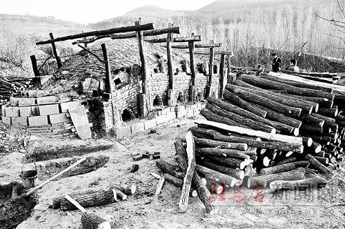 “如果泌陽縣境內的人趕來檢查,就說炭窯的位置在確山。確山縣來人檢查,就說在泌陽縣境內。如果認真了,就任由他們在窯頂上扒個‘窟窿’。 反正他們也帶不走炭和木材,等人一走,兩天后就會恢復原樣。”打工的中年女人還說,這次她本來想辭工,但老板不開工資,說等將收來的麻櫟樹燒完后就放人。為了趕工期,他們只好連夜加班將搗毀的炭窯修復一新。