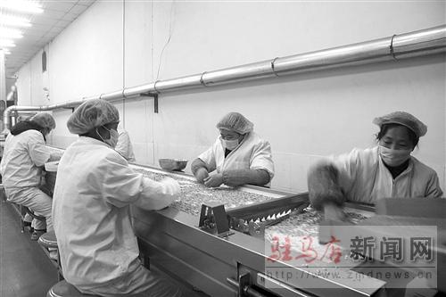 駐馬店益芳食品有限公司是臺灣益勝國際集團在中國大陸投資的子公司,公司位于確山縣產業集聚區,占地面積10畝,總投資1250萬元,安置困難就業人員100多名。圖為車間工作人員在精選花生。記者 王 朝 攝
