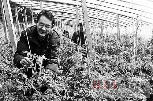昨天,確山縣普會寺鄉張營村種植大戶李唐正在管理即將上市的番茄。