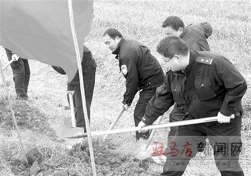 33,正陽縣公安局青年民警在該縣“青年林”種植楊樹。在植樹節來臨之際,該局組織了30余名青年民警到“青年林”進行義務植樹,當天共種植楊樹100余株。 記者 楊軍民 通訊員 張耀中  攝影報道