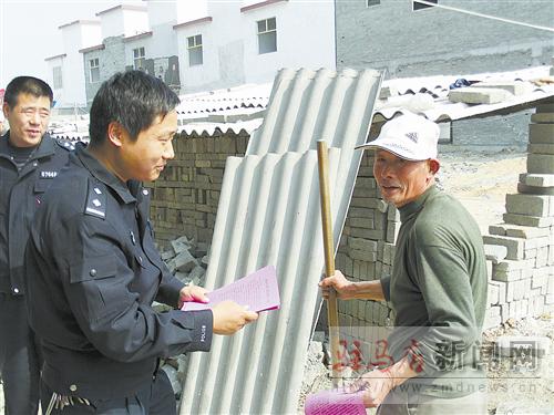 自開(kāi)展大走訪開(kāi)門(mén)評(píng)警活動(dòng)以來(lái),正陽(yáng)縣公安局永興派出所民警深入農(nóng)戶開(kāi)展工作,著力解決群眾切身利益問(wèn)題。圖為該所民警向群眾發(fā)放春季安全防范小知識(shí)宣傳單。記者 楊軍民 通訊員陳 攝影報(bào)道