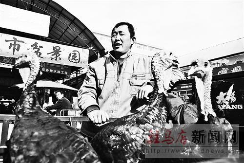 本報訊 菜市場內,有人賣烏雞,有人賣土雞,突然來了一個賣火雞的還真新鮮。12月6日,來自汝南縣老君廟鎮的張五就成了駐馬店華康市場的“明星”商販,他帶去的4只火雞讓他出夠了風頭。