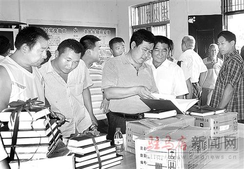 日前,汝南縣留盆鎮留盆村的村民正在翻閱由市委黨史研究室贈送的書籍。為了幫助汝南縣留盆鎮留盆村建設農家書屋,讓農民足不出村就可以吸取科技知識、知曉黨的歷史,市委黨史研究室向該村贈送3000多冊黨史圖書和科技書籍。記者 弓華靜 通訊員 李志強 攝影報道