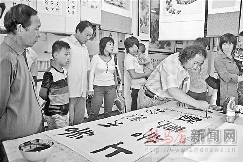 摘要: □晚報記者 景中原 通訊員 宋永亮 付宏強8月29日,書法家馮明威在上蔡縣寶盛齋第三屆書畫交流展上即興創作。近年來,伴隨著書畫創作隊伍的壯大,上蔡縣書畫市場也日漸活躍起來,每年至少有6000多平方