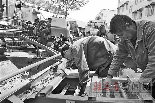 摘要: 5月19日,在西平縣正通農機合作社里,技術人員正在緊張地維修農機。至目前,該縣己引進、檢修大型收割機械2000余臺,為實現夏糧豐產豐收打下了堅實基礎。 記者 丁 振 通訊員 胡軍華 攝影報道